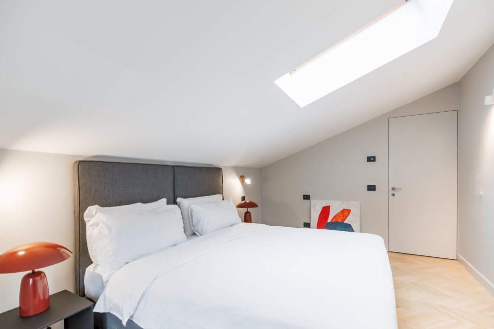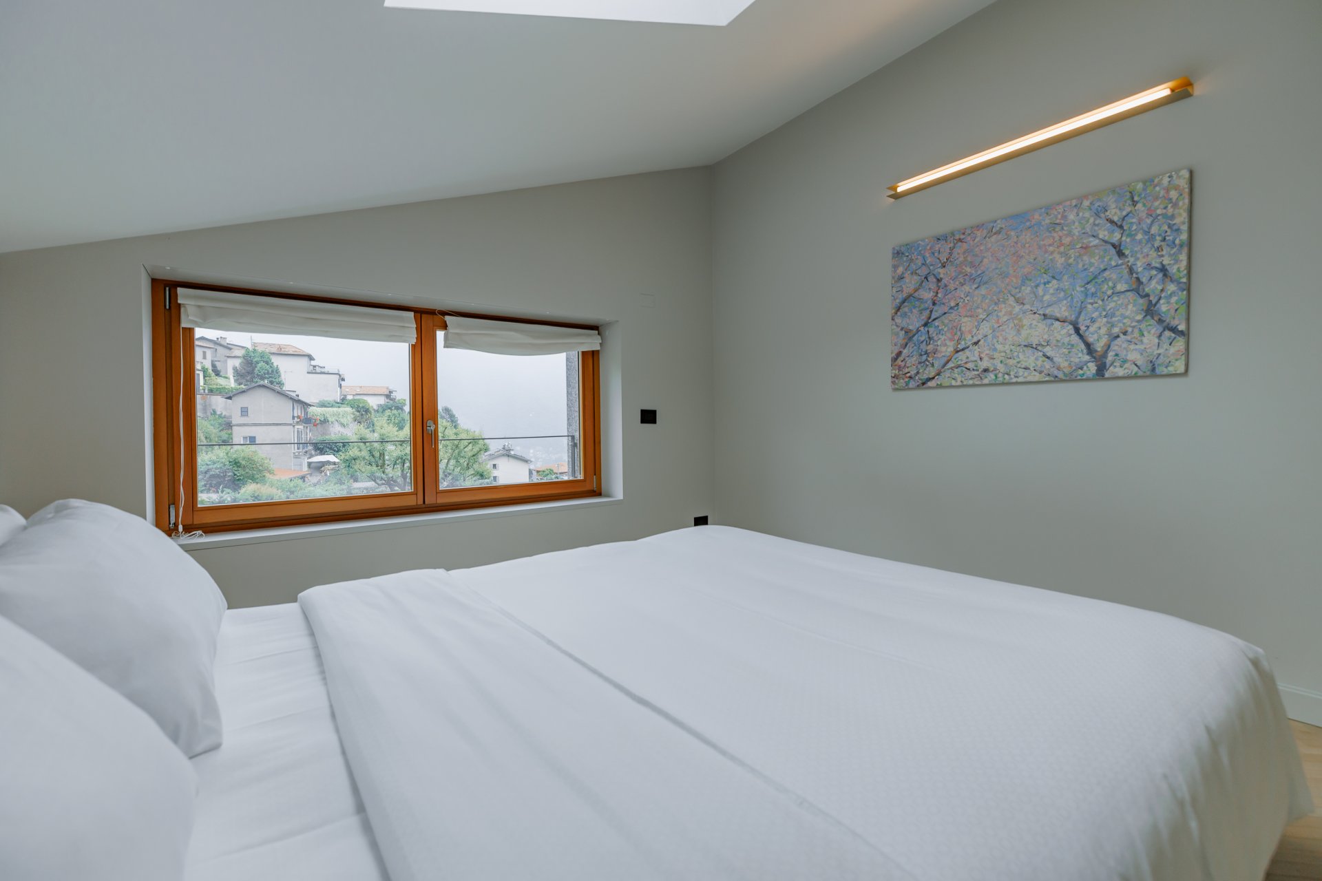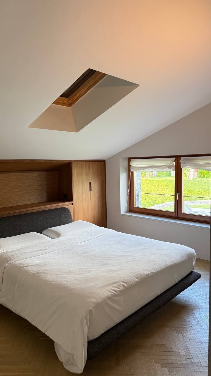 Apartment on the top floor of Villa Almana, measuring 100 square meters, consists of two bedrooms, both equipped with double beds, with the option to convert one of the beds into two single beds upon request. Both rooms offer a view of the garden. Two comfortable and modern bathrooms. Living room with kitchen where you can enjoy the view of the lake.